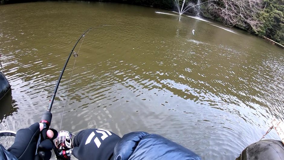 冬季に開放されているのは第一と第二ポンドですが、今日は大物が多数入れられている第一ポンドに絞って釣りをしていきます。なんとかスプーンでデカいやつを釣りたい!本日のノルマは50アップをゲットするということで、第一ポンドの桟橋へと足を運びます。